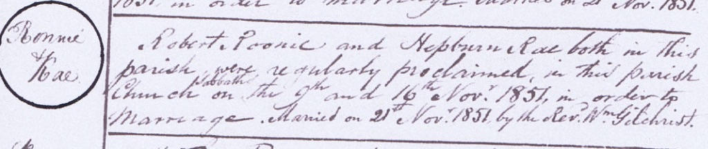 Shortly after the census was taken Hebron married Robert Ronney. Like her father, Robert was a coal miner. They married in Dalmellington, Ayrshire on 21 November 1851.