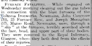 The report mentions a ‘slip’ at the furnaces. Certainly the circumstances merited further investigation as a fatal accident enquiry was held in respect of their deaths.