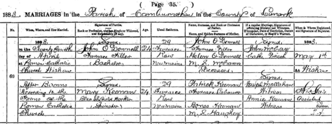 My 2nd great aunt, Mary Keenan was born on 23 August 1857 at Old Monkland, Lanarkshire. Her sister, Ellen was my mother’s paternal grandmother.