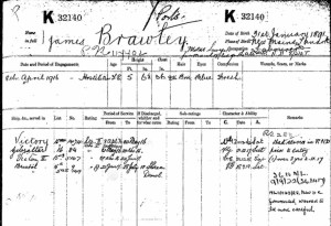 James Brawley was one of my maternal grandfather’s seven brothers. He was the second child of Daniel Brawley and Ellen Keenan. He was born on 31 January 1891 at 12 Furnace Row, Newmains.
