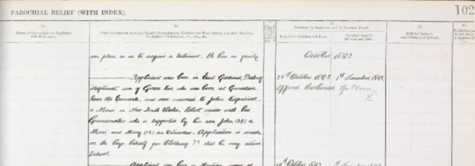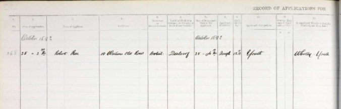 By 1892 the family were struggling and Robert’s grandmother was forced to make an application for Poor Relief. The application shows that the funds were required for clothing in order that Robert might attend school.
