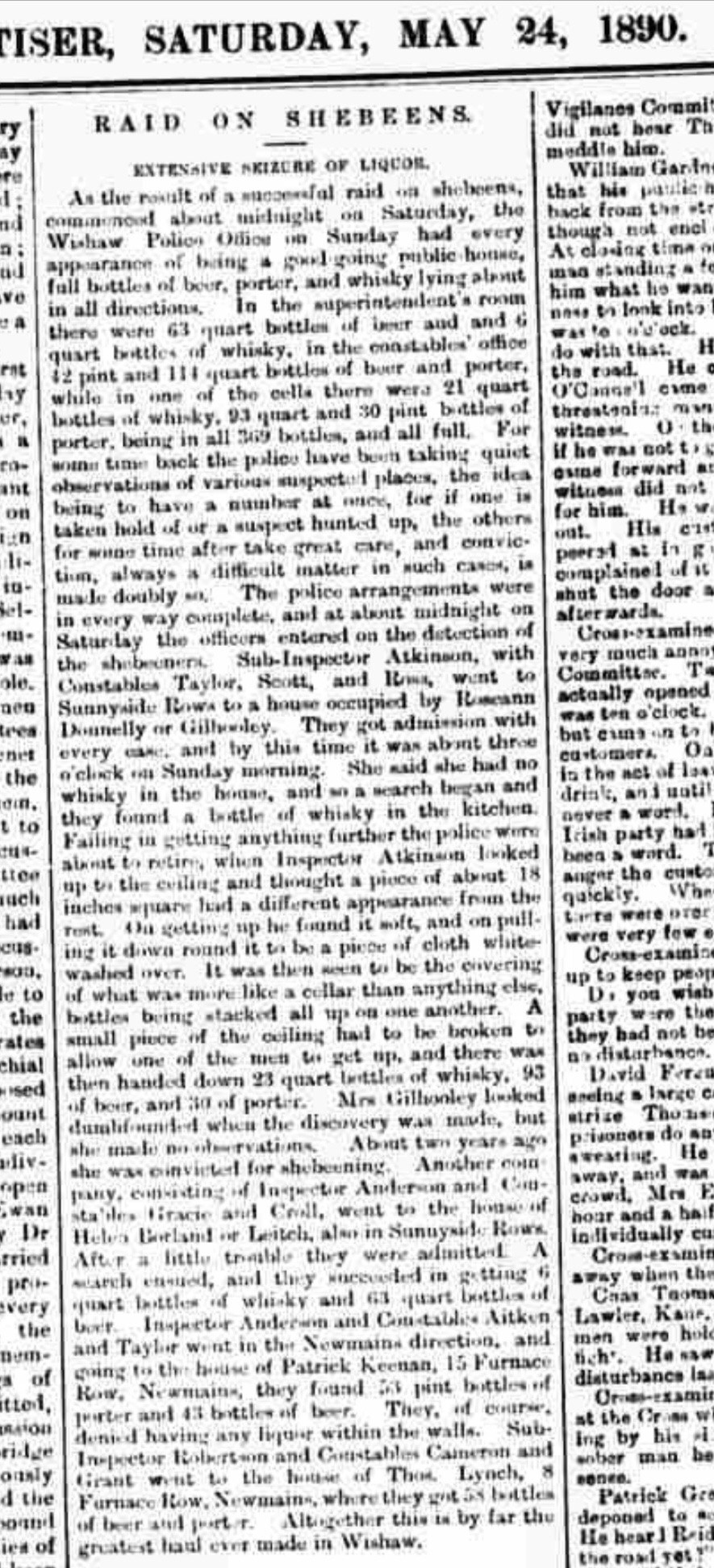 What a shock it must have been for Patrick when Inspector Anderson knocked on the door. And imagine his horror when those 53 bottles of porter and 43 bottles of beer were removed from the house. I wonder what happened to all that confiscated booze!