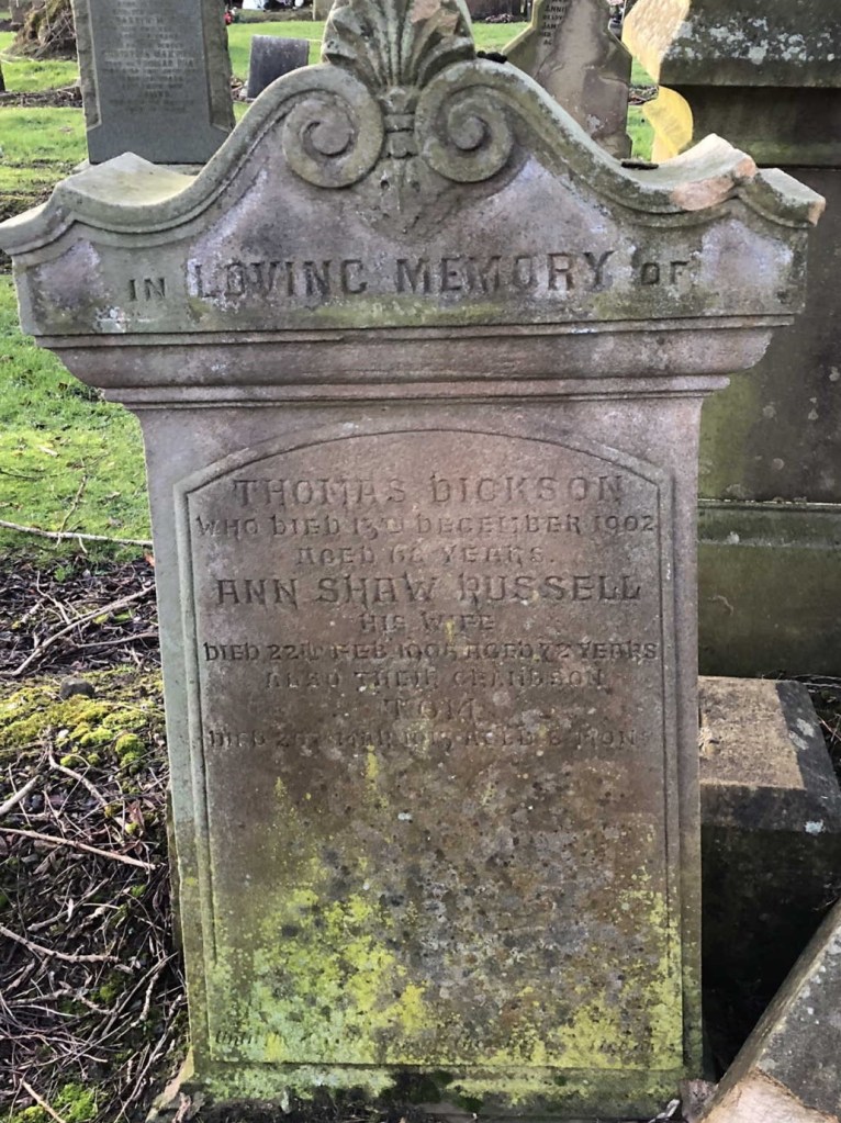 I found brother Thomas quite by accident when walking through the cemetery and I spotted this headstone. I recognised the names of my great grandparents immediately but the inscription shows that their grandson Tom is also buried in the plot. (I know it’s quite difficult to read) Baby Tom was just 8 months old when he died. This loss must really have been felt by Margaret who was almost 6 when he died. I can imagine her and Annie looking after their wee brother and proudly helping push his pram on outings.