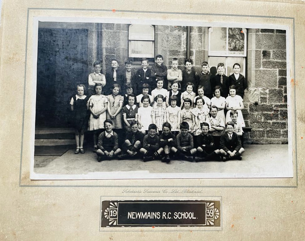 Maureen sent me the picture because it features St Brigid’s school way back in 1939. Her auntie is the girl second left in the photo and she thought maybe there could be someone from my family. The Brawleys were a big family in Newmains at the time with a lot of cousins so there’s a good chance that in a school group picture I might find a connection.