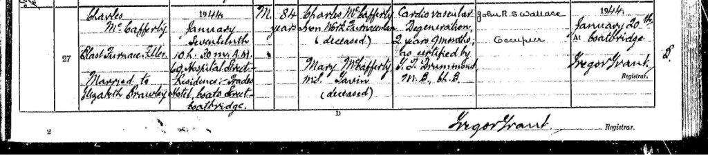 And that’s the last we hear of Elizabeth and Charlie as a couple. In the 1901 census of Elizabeth is still with her parents and recorded as Mrs McCafferty but there’s no sign of Charles. For a long time I assumed that he had died and I just left it at that.