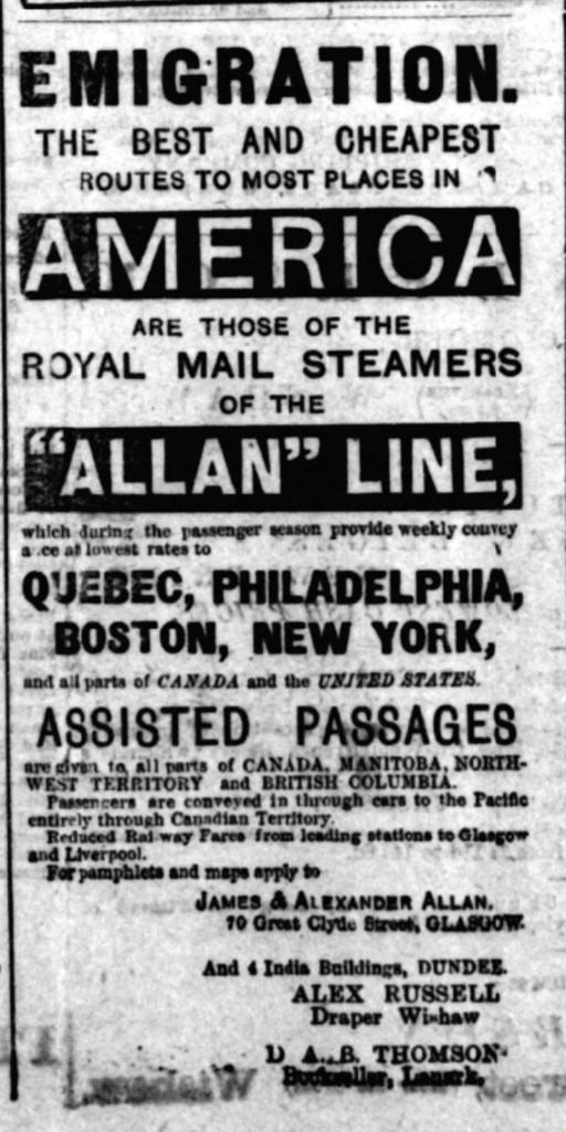 Sarah would undoubtedly have been devastated to see her boys leave. She knew what it was like to leave your country and family and everything you had known in the hope of a better life. At the time the McLaughlin’s left Mayo many of her friends and neighbours would have gone to America. Perhaps the family chose Scotland for financial reasons, an easier and cheaper crossing. Or perhaps they felt that by travelling to Scotland they would be able to return to Ireland in better times.