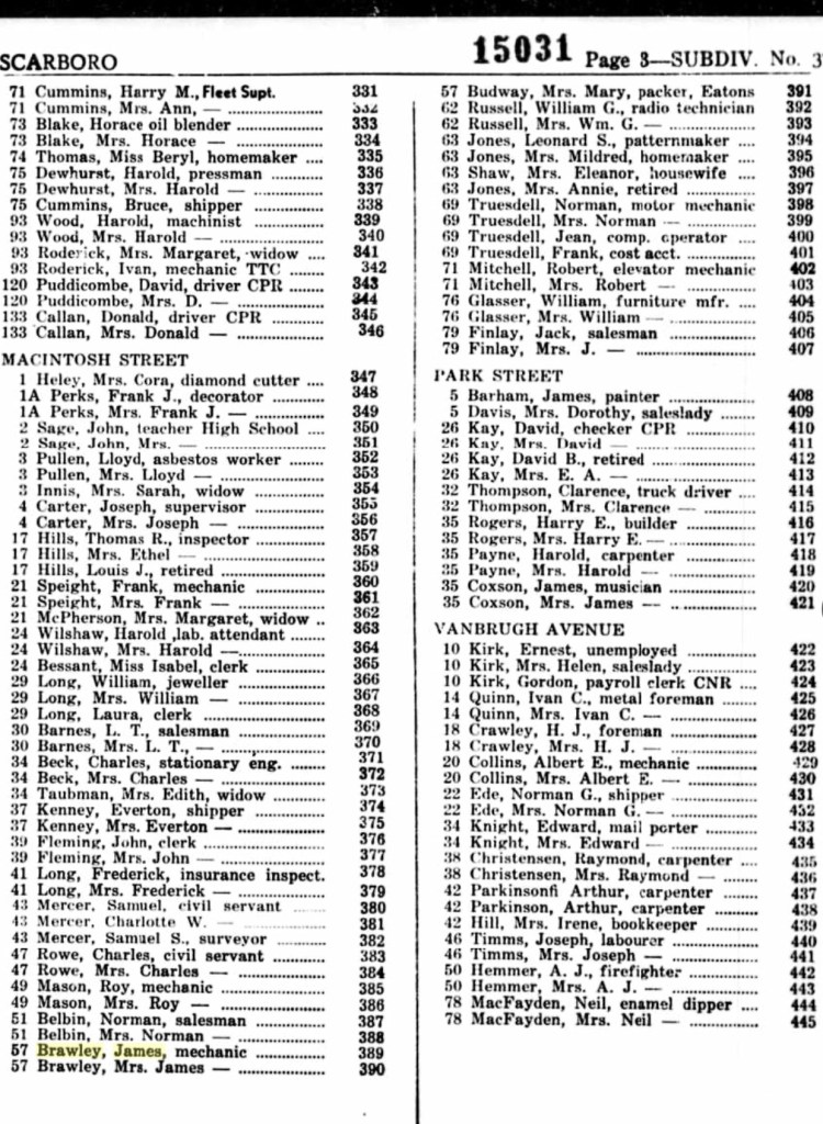 Later in the 1940s I’ve found the family living at 57 MacIntosh Street. It’s here that I discover that James was working as a mechanic. Mary was also at the family home. Her marriage to Jack did not last. He remarried and had further children. On his death notice in the newspaper in 1992 his children are listed but there is no mention of Michael. Even when I was younger divorce wasn’t common and would have been very much frowned upon then never mind in the 1940s. Perhaps attitudes in Canada were different but I suspect this would have been a tough time for Mary and the family.
