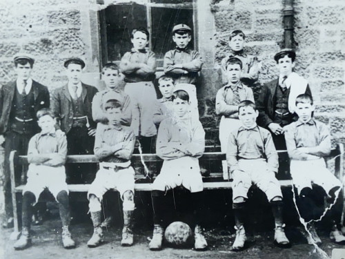 So Dan is in the middle of the front row. I wasn’t sure at first of the ages of the boys but at that time they didn’t get much further than a primary education so they are pretty young. There are 2 Daniel Brawleys in Newmains at that time. My grandfather’s brother was born in October 1887 and his cousin in September 1888. I’m inclined to think that the Dan in the photograph must be the older of the 2.